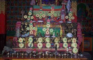 如今寺内珍藏有许多珍贵文物。有国师八思巴馈赠的神像、大明永乐年间的宗教法具、用羊毛丝编织的唐卡,相传还有格萨尔王使用过的宝剑等。