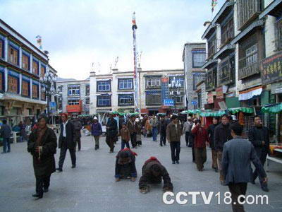 八廓街上经常能见到一此磕等身长头的朝圣者,有些甚至是十几岁的孩子。这些人往往都是真正从几千里外一步一长头磕到拉萨来朝佛的。不但路途遥远,而且又不能打零工挣钱,为了朝圣,他们在途中必须忍受十分清苦的生活。因此一点并不很多的资助就能给他们很大的帮助。