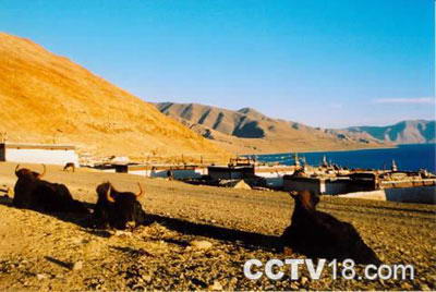 当惹雍错湖滨有一近百余户人家的小村落-文部乡。村里人多数半农半牧,在湖滨开了一些田地,种植青稞、土豆、油菜和小白菜等。在海拔4500余米的地方,居然还能种植这些作物,着实令人惊奇。这要归功于当地的湖区气候。