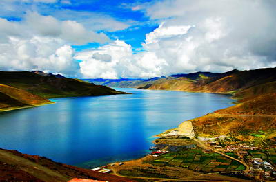 羊卓雍措风景秀丽,站在海拔4790米的岗巴拉山顶向南眺望,象一块镶嵌在群峰之中的蓝宝石,碧蓝的湖水平滑如镜,湖光山色,相映成趣。湖中盛产高原裸鲤鱼,其肉细嫩鲜美。