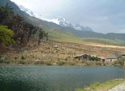 从丽江古城北行十余公里,便到了玉龙雪山南麓的玉湖行政材雪露自然村,该村的纳西语叫"巫鲁肯",意为雪山脚下的村子。1922年美籍奥地利人约瑟夫·洛克(1884一一1962)以美国《全国地理杂志》的探险家、撰稿人、摄影家等身份,从泰缅边境进入中国云南,然后从滇南思茅辗转至滇西北的丽江,从此在玉龙雪山下一住27年,其中大部分时间就住在玉湖雪篱村。他记述道:"巫鲁肯,一个环境优美、坐落在纯净的丽江大雪山山脉山坡上的小村子,雪山主峰扇子陡,犹如保护神似地保护着它。美国国家地理学会云南省探险队的总部就设在这儿。
