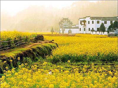 步入花的海洋,忽见成群结队的蜜蜂,来来往往,飞翔在花的世界里,尽情地吸吮着菜花的精华。他们是那些追蜂逐蜜的养蜂人从全国各地带来的,这些中国惟一流浪着的“春天的吉卜赛人”,安营扎寨油菜花丛中,风餐露宿,编织着春天的童话,收获着春天的甜蜜。