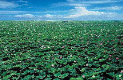 白水塘是陆良县最大的内陆湖泊,现有水域面积5000多亩,四周良田万顷,村宇环绕,交通便利,区位极佳。夏日荷叶连田,芙蓉映碧鱼跃鸟飞;秋天稻香千里,遍地黄金,好一派江南水乡之美境。每值仲夏都有上万游客络绎不绝到此享受"稻花香里说丰年"、"蛙声伴乐赏芙蓉"、"醉倒游客一满塘"的意境。
