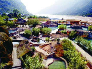 大峡谷温泉生态园总占地面积300余亩,露天温泉浴区占地100亩,可同时容纳3000人以上浸泡温泉。现有各种规格、各种特色的药物池、牛奶池、咖啡池、花瓣池、套醋池等30多种浴池。设有适量的高档消费的贵宾浴房、沐浴健身中心,是目前国内最大的温泉浴汤。园内配套规划建设有:大型停车场、宾馆、休闲度假的35栋“东巴别墅”、可容3000--5000人玩乐的民族广场和景观大道、多种娱乐设施和体育设施。园内规划绿化空间50%以上,堪称西部以温泉资源为主题各种配套设施齐全、颇具规模,有独特情调的旅游生态园。
