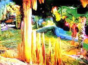 瑞晶洞由于洞壁裂隙特别发育,方解石的含量高,洞内温度气压相对比较稳定,这就为石花产生创造了特别条件。瑞晶洞石花多达36000多朵,如此巨大的数量,目前在全世界有关资料中尚未有记载。这些石花形态各异,争奇斗艳,竞相怒放,有的似三月飞英,有的似夏日阳光下拍岸的浪花,有的似秋菊绽开,更有成片的石花如北国冬日漫天飞舞的大雪,纷纷扬扬,大大小小的石花布满洞顶,使瑞晶洞成了世上罕见的地下花园。