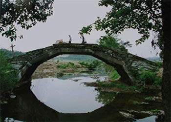 古月桥横亘在赤岸镇雅治街村口的龙溪上,是浙江省级文物保护单位。该桥建于宋嘉定六年(1213年),系单拱五边形石拱桥。桥全长31.20米,别致的造型、独特的构造,显示了工匠们的高超技艺。桥顶面梁石上刻有“皇宋嘉定癸西季秋闰月建造”字样,是义乌市内最早的古石桥,具有较高的历史、科学和艺术价值。