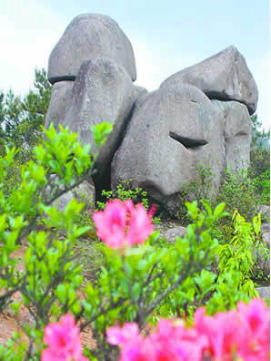 而今满山迎风招展的杜鹃花和郁郁葱葱的丛林,把神龟巨石点缀得更加明亮、绚丽。