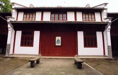 摩诃殿位于财神殿弄与中马路交叉口,是蒋姓族人纪念第二代远祖蒋宗霸家祠。蒋宗霸,五代后梁贞明年间人,笃信佛教,口中常念“摩诃般若波罗蜜多”,故称“摩诃居士”。1931年,毛福梅出资建造,作蒋家女眷日常拜佛诵经处。大殿坐东朝西,黄墙青瓦,粉壁赭廊,两旁两层厢房各11间。殿后天井,卵石铺面。1989年拨款大修。