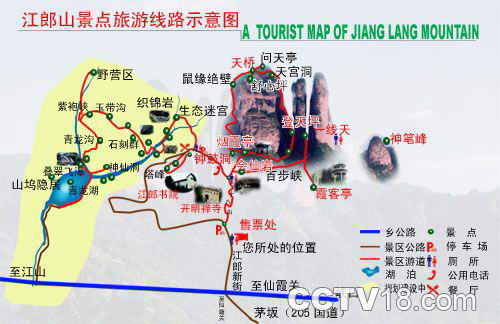 江郎山位于浙闽赣三省交界处的江山市境内,距江山市区25公里,素有“雄奇冠天下,秀丽甲东南”之誉,,以雄伟奇特的“三爿石”著称于世,拥有全国丹霞第一奇峰之称。山有三石峰,拔地如笋,摩云插天,相传为江氏兄弟三人登巅化石而成。一线天被勘定为全国之最,郎峰天游被誉为浙江最佳景点。此外,霞客游踪、洞岩钟鼓、石大门、仙居寺剑瀑、浮盖山、景星山、峡里湖、须江瑶 池、笔头峰、海螺峰、郎峰仙道、石隙奇观、天然国画、丹霞赤壁、美食一条街、郎峰天桥、神女临江、月亮湖、洞天寿星、开明禅寺诸景亦各尽其奇。