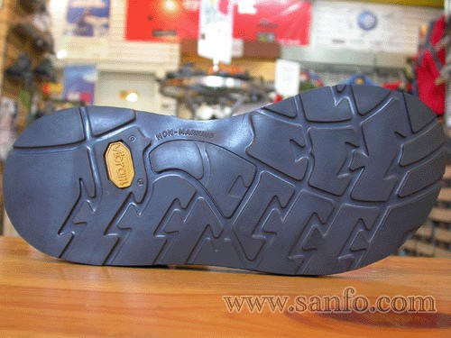 CHACO的Vibram NON-MARKING防滑大底,从这个V底可以看出,谁说V底都不防滑底,这款就是Vibram特别设计底防滑大底,其防滑性能非常棒,从这个鞋底可以看到,鞋底成大块平面分布底花纹,花纹很潜主要是为了增大与地面底接触增加摩擦,鞋底橡胶比较软可以增加附着性,鞋底整体由细小底排水沟相连通。