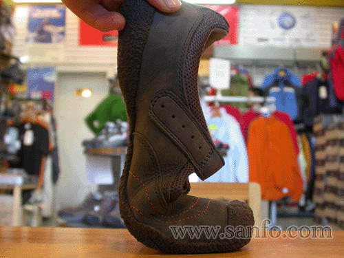 从图中你就可以感觉出它的轻便,弯曲非常简单与脚步非常贴合,行走中脚部自然弯曲的用力最省,但是此鞋的支撑性一般,只是适合城市休闲使用,适合平整的地面。