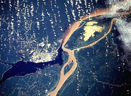 亚马逊河浩浩荡荡,千回百转,蜿蜒流经秘鲁、巴西、玻利维亚、厄瓜多尔、哥伦比亚和委内瑞拉等国,滋润着800万平方公里的广袤土地,孕育了世界最大的热带雨林,使亚马逊河流域成为世界上公认的最神秘的“生命王国”。亚马逊河还有一个世界自然奇观——涌潮,它可以和我国的钱塘江大潮相媲美。