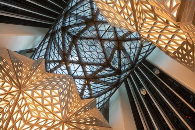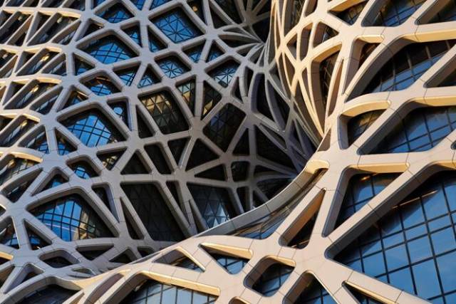 摩珀斯酒店以玉饰为设计灵感,突破多项建筑技术,是全球首座采用自由形态外骨骼结构的摩天大楼。建筑中央的镂空部分以“8”字为设计概念,突显了独特的设计美学,打造了特色玩味的内部空间。要实现这个建筑结构,其所消耗的钢材量总和超出用以建造巴黎铁塔锻铁的四倍。