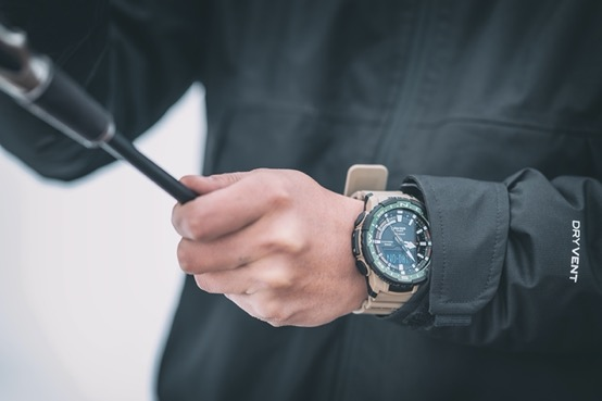 而在户外提供地势信息的工具中,个人认为评价标准可以用及时、准确的将户外地势信息呈现给使用者是最为重要的,这也是我无论每次去哪里都会将户外手表作为必不可少的户外工具之一。之前的户外手表长时间陪我征战户外,已在前段时间光荣退休。恰巧无意间看到PRO TREK“angler line”系列的PRT-B70满足了我所有的需求,卡西欧PRO TREK为其配备四重感应器(罗盘、高度&气压、温度、计步器),蓝牙连接功能、潮汐图/月龄、同时也能精准推荐钓鱼时间,使得外出上天入海更加从容,所以果断入手!