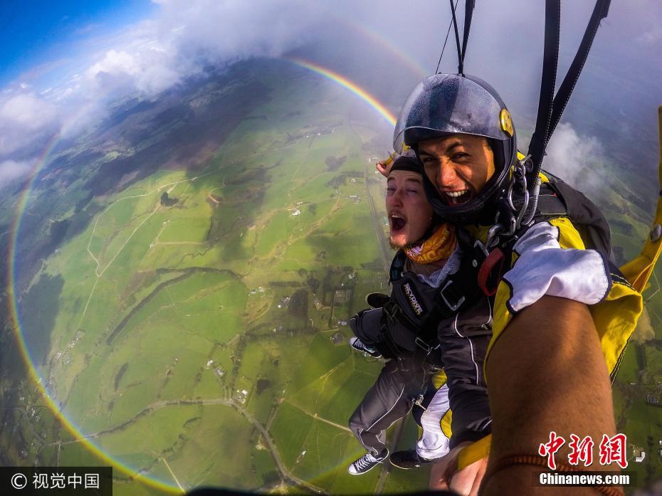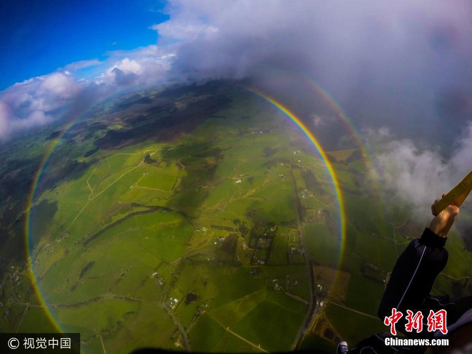 2017年8月17日消息,英国男子Anthony Killeen在首次跳伞时竟幸运偶遇了极其罕见的圆形彩虹,并用相机拍下了这美到窒息的瞬间。
