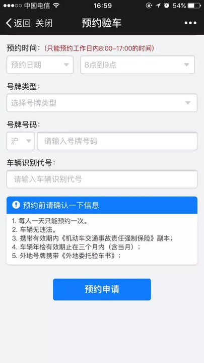 点击“预约验车”