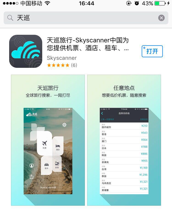 喜欢天巡搜索机票结果,很简单直接,机票多少钱,跟国内几个大巨头对比,搜索结果出来一整屏的内容,简单多了。
