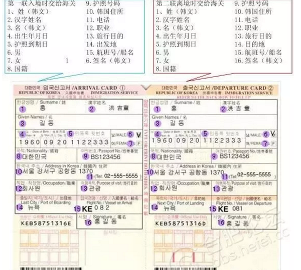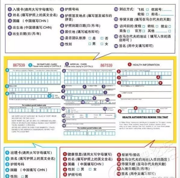 同为英语小白,就也贴一份各国入境卡中英对照版吧。