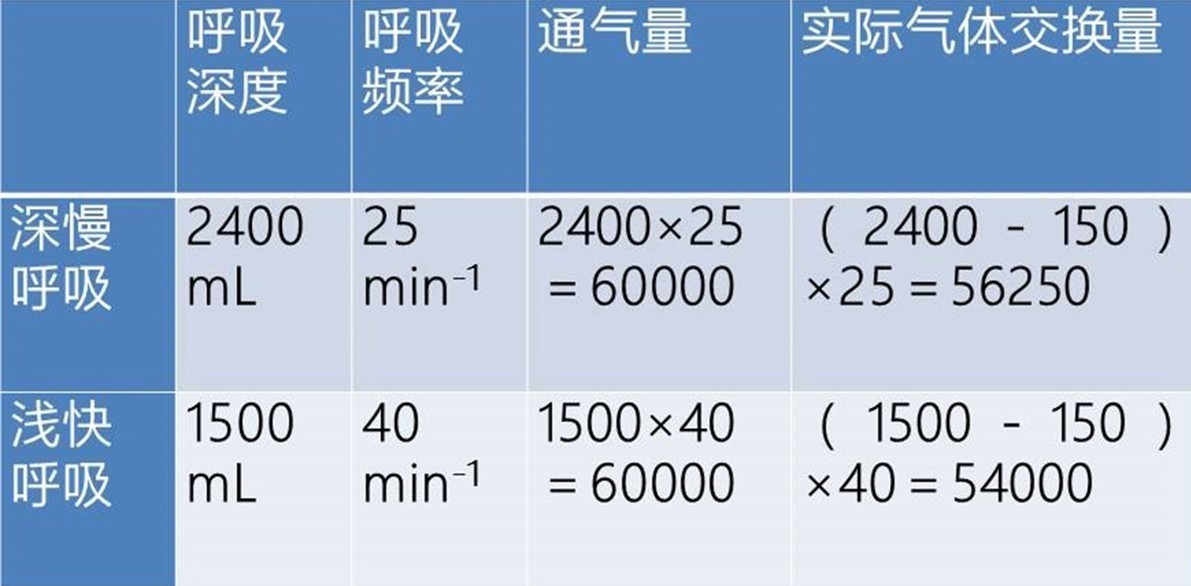 人在跑步时,人体所需氧气需要量随着跑步速度加大而相应增加,为了改变这种情况,需要加快呼吸频率和增加呼吸深度。但是,呼吸频率的加快是有一定限度的,一般最有效的范围是每分钟35~40次。如每分钟最高达到60次,平均一秒钟就要进行一次呼气和吸气,这样势必使呼吸变浅,换气量减少,影响氧气的吸入和二氧化碳的排出。