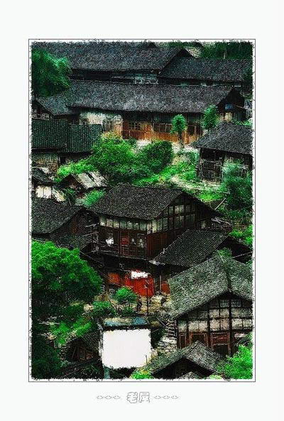 从凤凰出来的时候,天气已经转晴了,来到这里又在下雨,也许是因为在乌江边,所以云雾也比较重,气候比外面要潮湿些,每天早上推开窗就看见对岸雾蒙蒙的山峡,还有那棵滴着水的黄角树。我依然喜欢下雨,在下雨的天气里,吊脚楼的颜色显得格外陈旧,趴在窗上,邀望那一江烟雨,思绪被带回远去的年代,耳畔仿佛响起纤夫的号子,仿佛看见木船顺着绞索吃力前行。